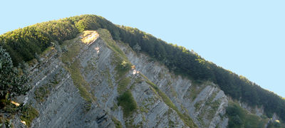 Giunti in quota si supera un primo bivio, con il sentiero 90a che scende a Sant’Angelo in Vado, svoltando a sinistra per proseguire lungo la lunga cresta boscosa, iniziando una interminabile sequenza di saliscendi intervallati da alcune aperture panoramiche, a volte sulla sinistra sulla valle del Metauro ed a volte sulla destra sul Carpegna e sui sassi Simone e Simoncello, che si stagliano nettamente sullo sfondo.