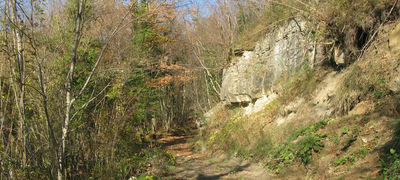 Si inizia salendo tra le case su strada asfaltata, che viene quasi subito abbandonata per imboccare una sbrecciata che si seguirà per lungo tempo, intervallata da diversi “tagli” su sentiero che permettono di guadagnare quota più rapidamente (qui le pendenze sono piuttosto dure) e raggiungere il primo crinale, a 800 metri di altitudine.