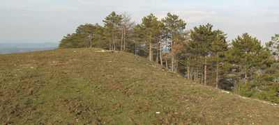 Il lungo falsopiano ha termine nel punto in cui si incrocia, da sinistra, il sentiero 441B che funge da raccordo con il sottostante tracciato del sentiero 440. Qui si svolta a destra, ai margini del prato, su una traccia ben segnalata che conduce in poco tempo alla vetta del Pietralata, contrassegnata da una piccola croce e circondata dall’ampio prato che si estende a perdita d’occhio verso ovest. Dalla vetta si può proseguire sul sentiero 446, che scende sull’altro lato diretto al cuore della Gola del Furlo.