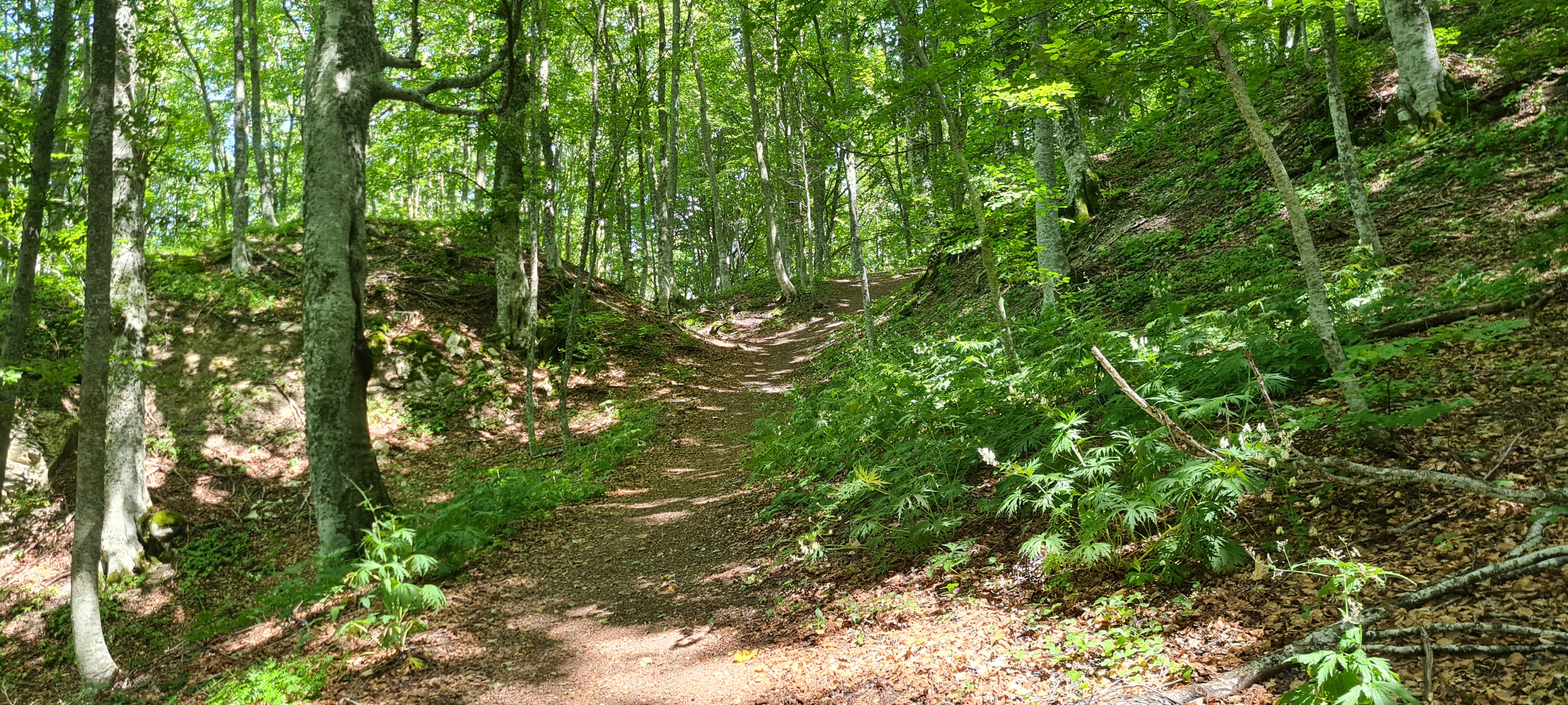 Tra i percorsi si segnalano il 101 che sale dal paese di Carpegna, sede dell'ente parco, fino all'Eremo Madonna del Faggio, attraversando la foresta demaniale ed uscendo sui prati sommitali permettendo di ammirare il bel panorama a 360° che si può godere dal Monte Carpegna, ed il 102, che proviene da Scavolino (situato nel versante riminese) e raggiunge la vetta della montagna.