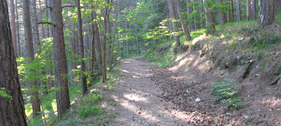 La salita prevede alcuni stretti tornanti all'interno del bosco, in una zona molto ombreggiata dove il sole difficilmente riesce a penetrare, con la conseguenza di rendere il terreno piuttosto scivoloso ed insidioso, qualsiasi sia la stagione in cui si affronta il percorso.