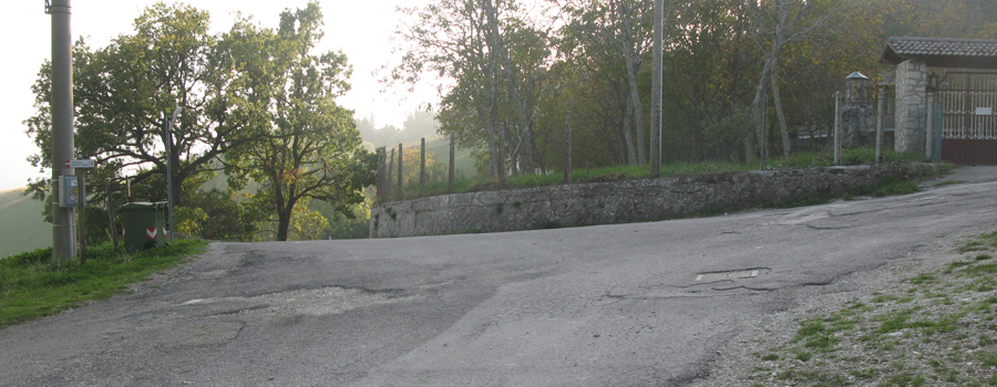 In breve si raggiunge la strada asfaltata che conduce al borgo medievale (recentemente ristrutturato e sicuramente meritevole di una sosta), che si lascia dopo qualche centinaio di metri per effettuare una svolta sulla destra su di un sentierino (si individua facilmente ma è privo di segnatura, fare attenzione a non mancarlo), mediante il quale si taglia un ampio tornante e si riprende l’asfaltata quando si è oramai in vista di Pietrarubbia.