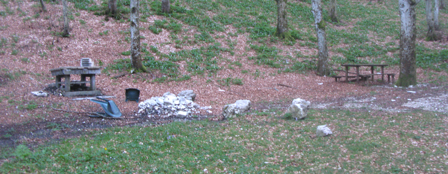 L’attacco del sentiero è stato, recentemente, deturpato in maniera piuttosto evidente da un’operazione di disboscamento della zona, tanto che al posto della debole traccia è ora presente un’evidente stradina sterrata che si inoltra nel bosco, circondata da una notevole quantità di alberi abbattuti. Il sentiero vero e proprio si trova al termine della “devastazione”, sepolto da tronchi e rami tagliati, cosa che ne rende quasi impossibile l’individuazione e molto difficile la percorrenza, almeno nel suo tratto iniziale (il fatto che i rami non siano stati rimossi indica quanto poco frequentato sia questo percorso).
