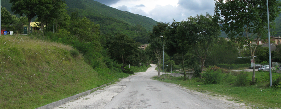 Si segue la provinciale per circa 200 metri, prima di svoltare a sinistra sulla strada che conduce all'ingresso del Camping Catria, che si oltrepassa proseguendo dritti lungo la via principale.