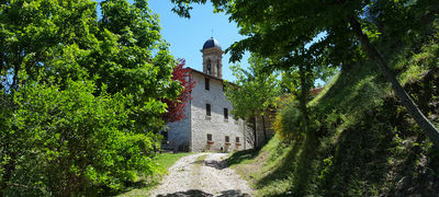 Al termine della strada si incontrano i primi segni CAI ed inizia il sentiero vero e proprio, che inizialmente sale in maniera piuttosto decisa, mentre sulla sinistra si può apprezzare il panorama sulla sottostante vallata con le acque del Metauro che scorrono placidamente.