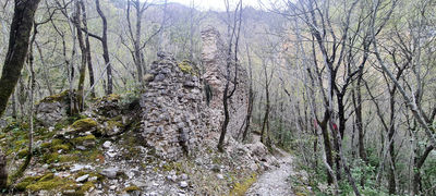 Questo breve tratto, che sarà anche l’unico dove riprendere fiato, in quanto tutto il percorso si sviluppa in salita con pendenze a volte anche molto dure, termina dopo poco in corrispondenza di un torrentello in secca, superato il quale si imbocca una vecchia mulattiera con fondo pietroso e si inizia a salire decisamente.