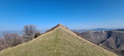 Da questo punto in avanti il sentiero prende a salire in maniera piuttosto decisa con un susseguirsi di svolte all’interno del bosco, incontrando fino all’uscita sui prati sommitali un unico bivio, peraltro ben segnalato, in corrispondenza del quale occorrerà prendere il sentiero verso destra.