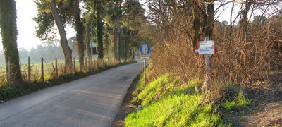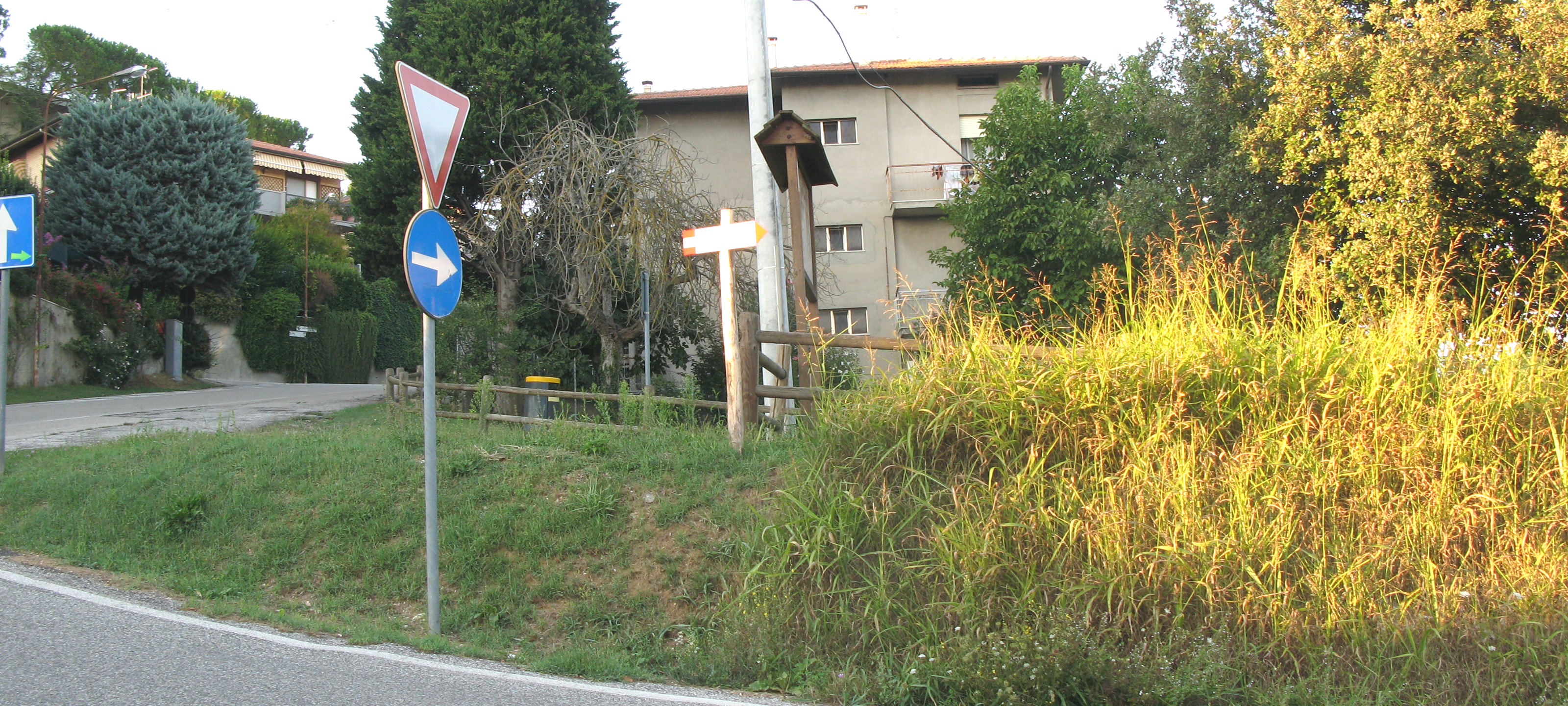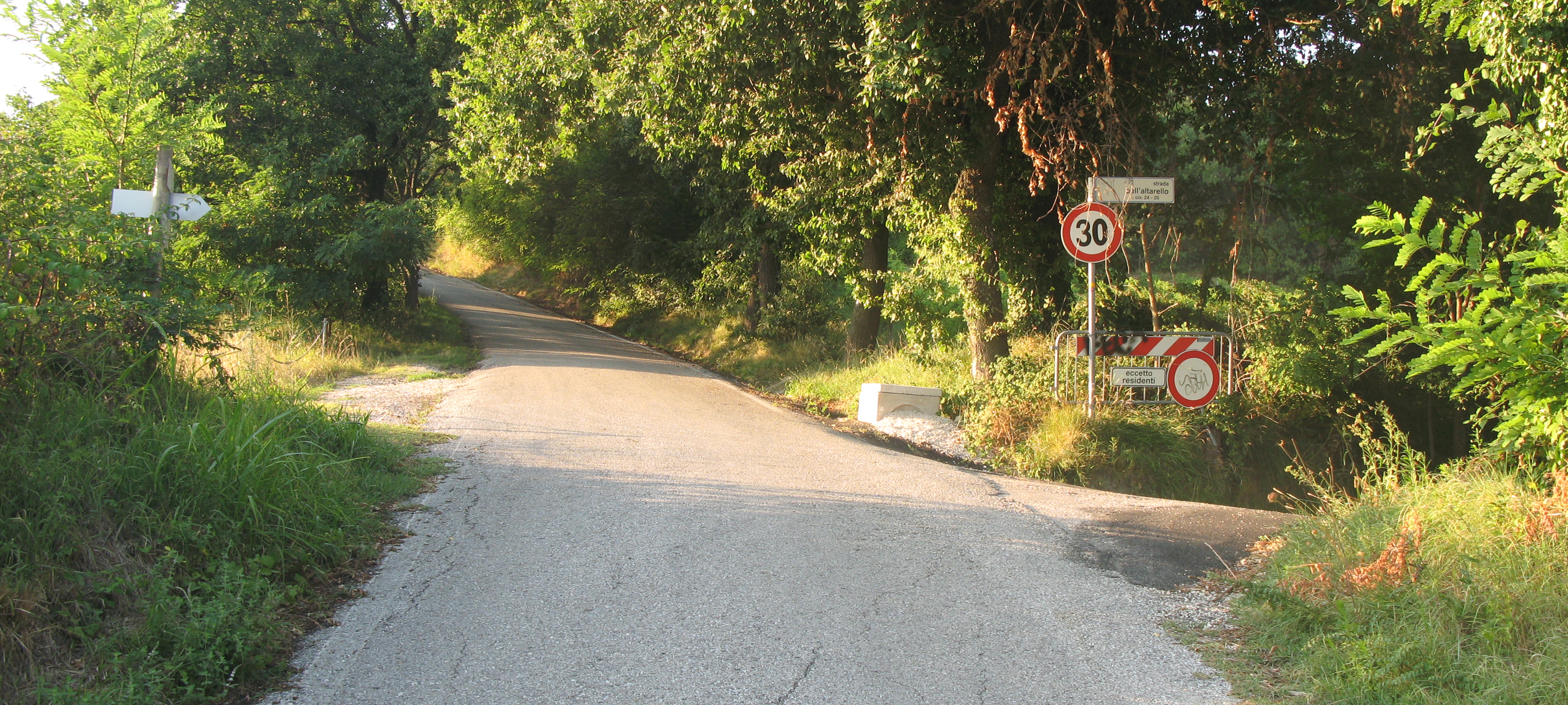 Si tratta di una strada asfaltata che parte per l’appunto da Cattabrighe, denominata via dell’Altarello, che sale subito con pendenze importanti verso il parco, lasciandosi alle spalle le ultime case della frazione ed attraversando una valle caratterizzata da un bel paesaggio rurale.