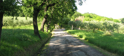 Da qui si prosegue inoltrandosi nel paese, seguendo i numerosi segni presenti ai margini della sede stradale, imboccando e percorrendo per intero Via della Cupa, prima di svoltare a sinistra su Strada Fonte, da dove inizia un nuovo tratto in salita. Si percorre la via costeggiando alcune abitazioni e si giunge quindi ad un nuovo incrocio, in corrispondenza del quale si abbandona l'asfaltata per svoltare a sinistra su di una stradina bianca che si inoltra nei verdi campi soprastanti.