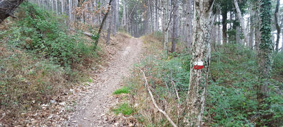 In breve tempo ci si inoltra all’interno del bosco, affrontando una leggera salita e facendo attenzione alla segnatura sugli alberi (di recente realizzazione e ben individuabile), in quanto la traccia si fa incerta e l’ambiente è molto uniforme.